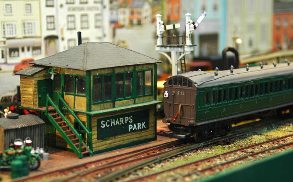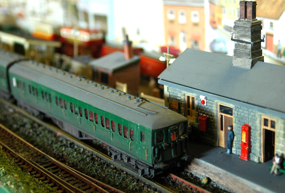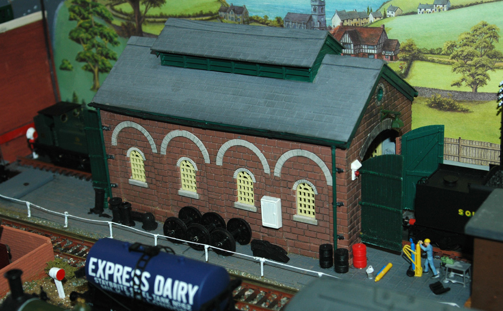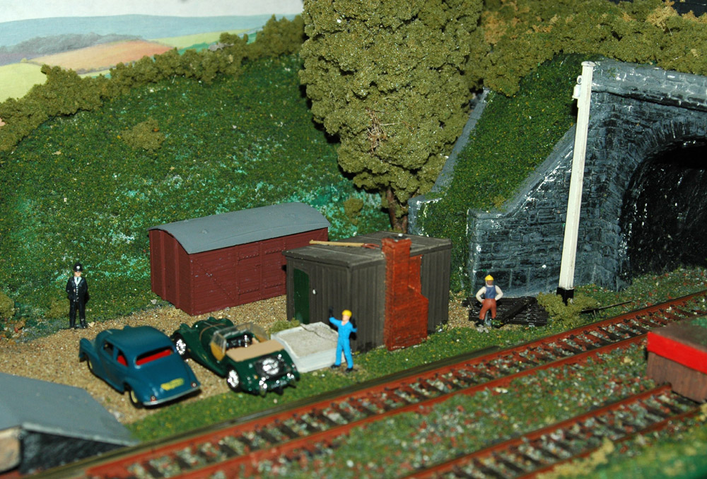 This an imaginary preservation site, somewhere South of London, perhaps once the end of the surburban third rail electrification of the 1930's. The line closed in the Beeching era, but was taken over by the preservationists to show off their collection of Southern EMUs.